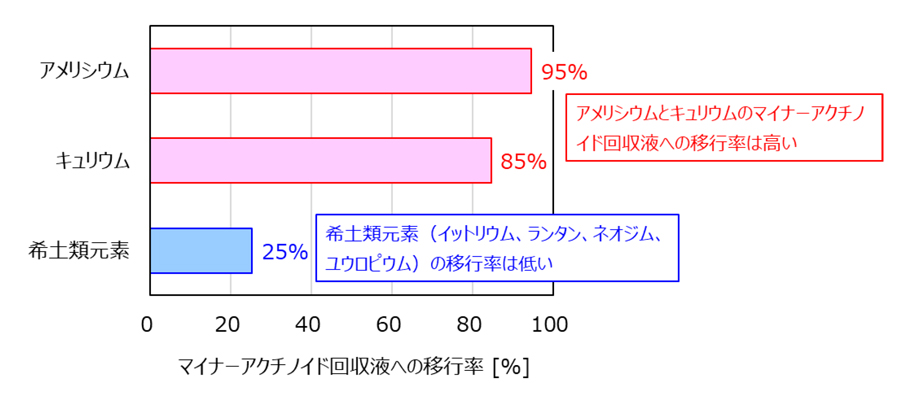 図4 マイナーアクチノイド回収液へのアメリシウム、キュリウム、希土類元素の移行率
