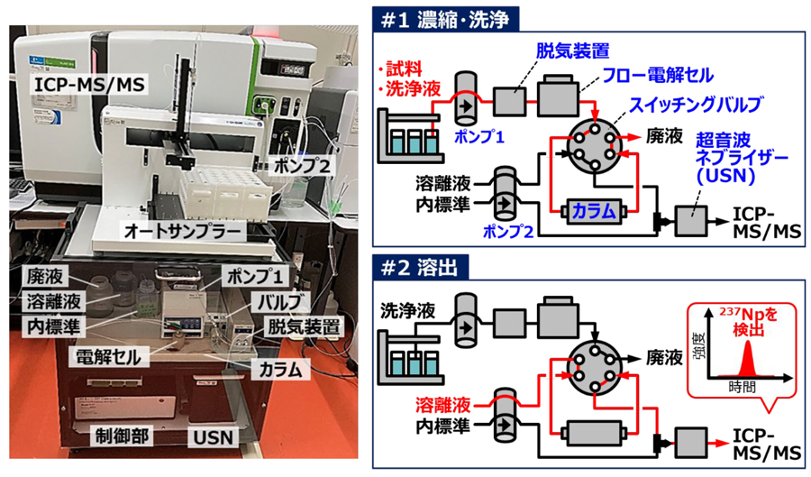 こうした背景を踏まえ、研究チームはアクチノイド分析の迅速化・簡便化・スキルフリー化の実現を目指して、Pt/GC-WEによる電解還元とオンライン固相抽出/ICP-MSを統合し、アクチノイド分析に特化した自動分析システムの開発を開始しました。