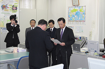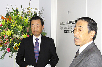 | 開所式 | 左:青森研究開発センター 所 長 鈴木 侃 右:青森研究開発センター 副所長 北村 敏勝 |