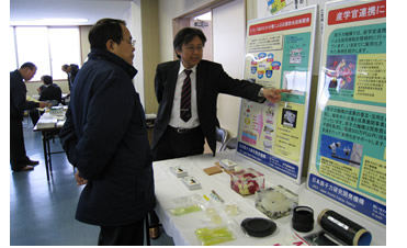 今回の展示会には、この成果展開事業を利用し、商品化された製品や、成果展開事業を紹介するパネル等を展示いたしました。また、製品の能力向上等、企業がかかえる技術的な問題なども気軽に相談いただくコーナーでは、日頃、疑問に感じていることを相談する姿も見られました。