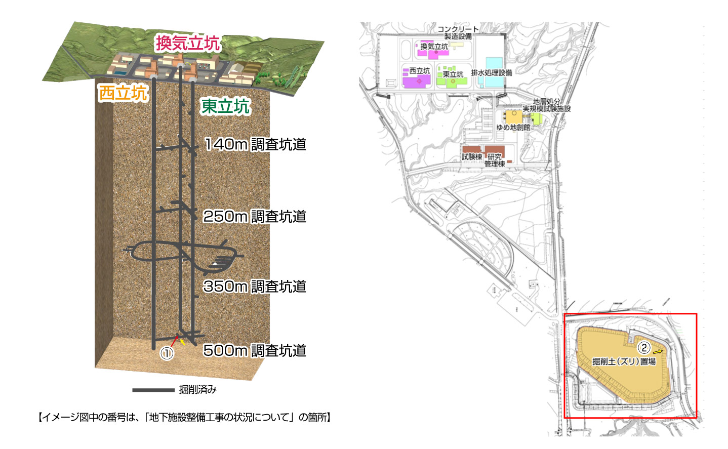 現在は、研究所用地やその周辺において、地下施設の建設、第2段階および第3段階の調査研究を行っています。
