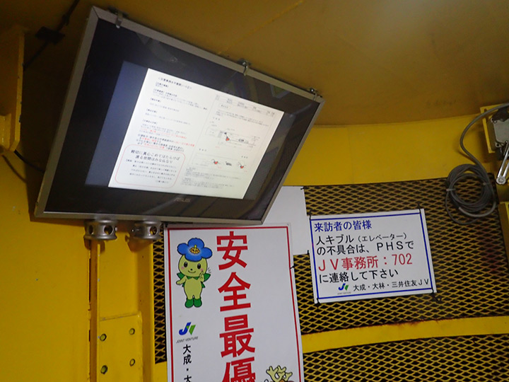 西立坑 人キブル(工事用エレベータ)の状況です。