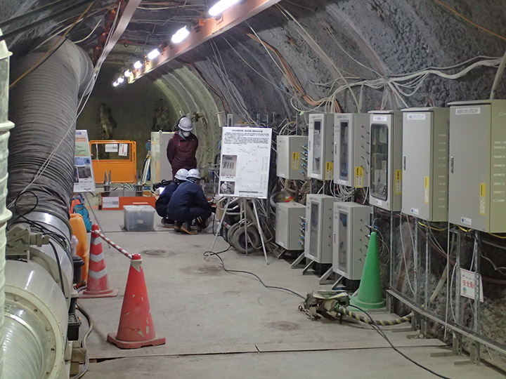 深度350m調査坑道 試験坑道4で安全パトロールを行っている様子です。