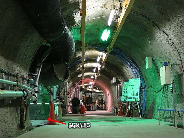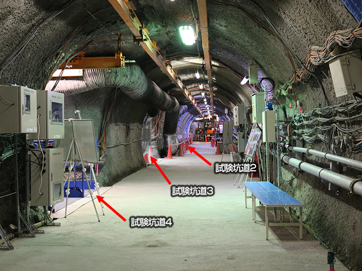 左側に手前から試験坑道4、3、2の坑道があります。