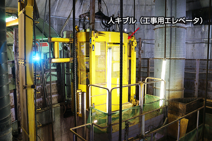 ② 西立坑 坑口人キブル(工事用エレベータ)乗り場