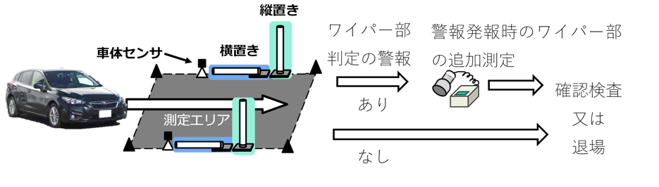 ゲート型モニタを活用し、検査基準値を超過した車両を確実に検出できるタイヤ・ワイパー部同時検査手法を開発