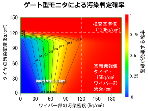 ⇒警報発報値と比較し、汚染判定精度(=警報の発報確率)を評価