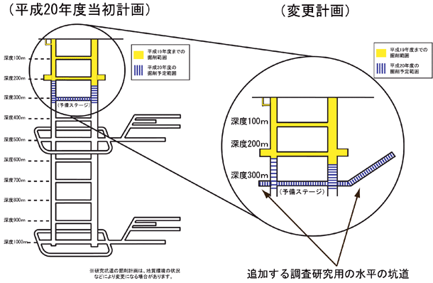平成20年度の研究坑道掘削範囲図(概念図)