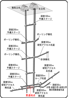 瑞浪超深地層研究所研究坑道 深度500m水平坑道の貫通について(お知らせ)