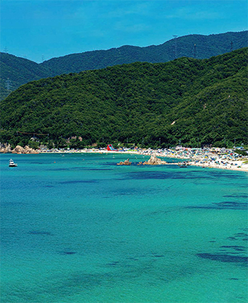 水島 (敦賀市) 透明度の高い水質と白い砂が自慢の無人島“ 北陸のハワイ” と呼ばれています(No.123)