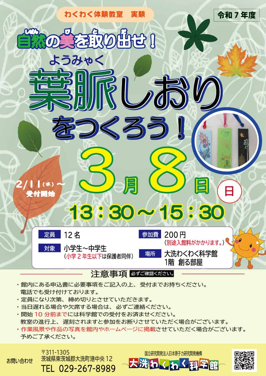 体験教室のご予約は、申込用紙(館内受付にございます)もしくは電話にて受け付けております。