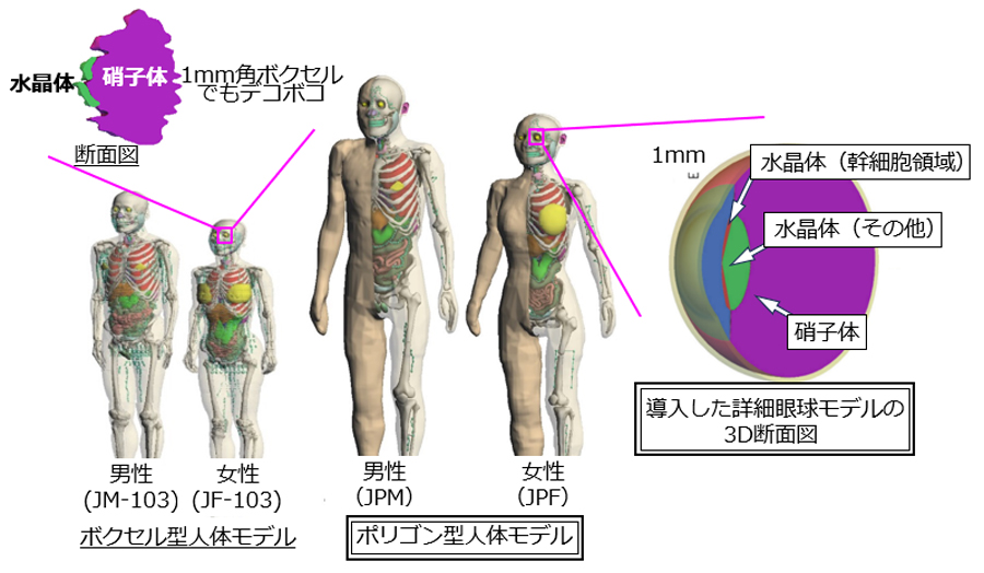 放射線の被ばく線量は体格、臓器の形状・材質(元素組成や密度)など特性を反映した人体モデルを利用して、シミュレーションで評価する。日本原子力研究開発機構では、従来よりも体内構造を精緻に再現した成人日本人の「ポリゴン型詳細人体モデル」を新たに開発、ソースコード管理サイト「GitHub web」で無償公開した。放射線感受性が高い水晶体の幹細胞領域も被ばく線量を正確に評価できることから、医療や原子力分野での被ばく線量評価や放射線防護研究への活用が期待されている。